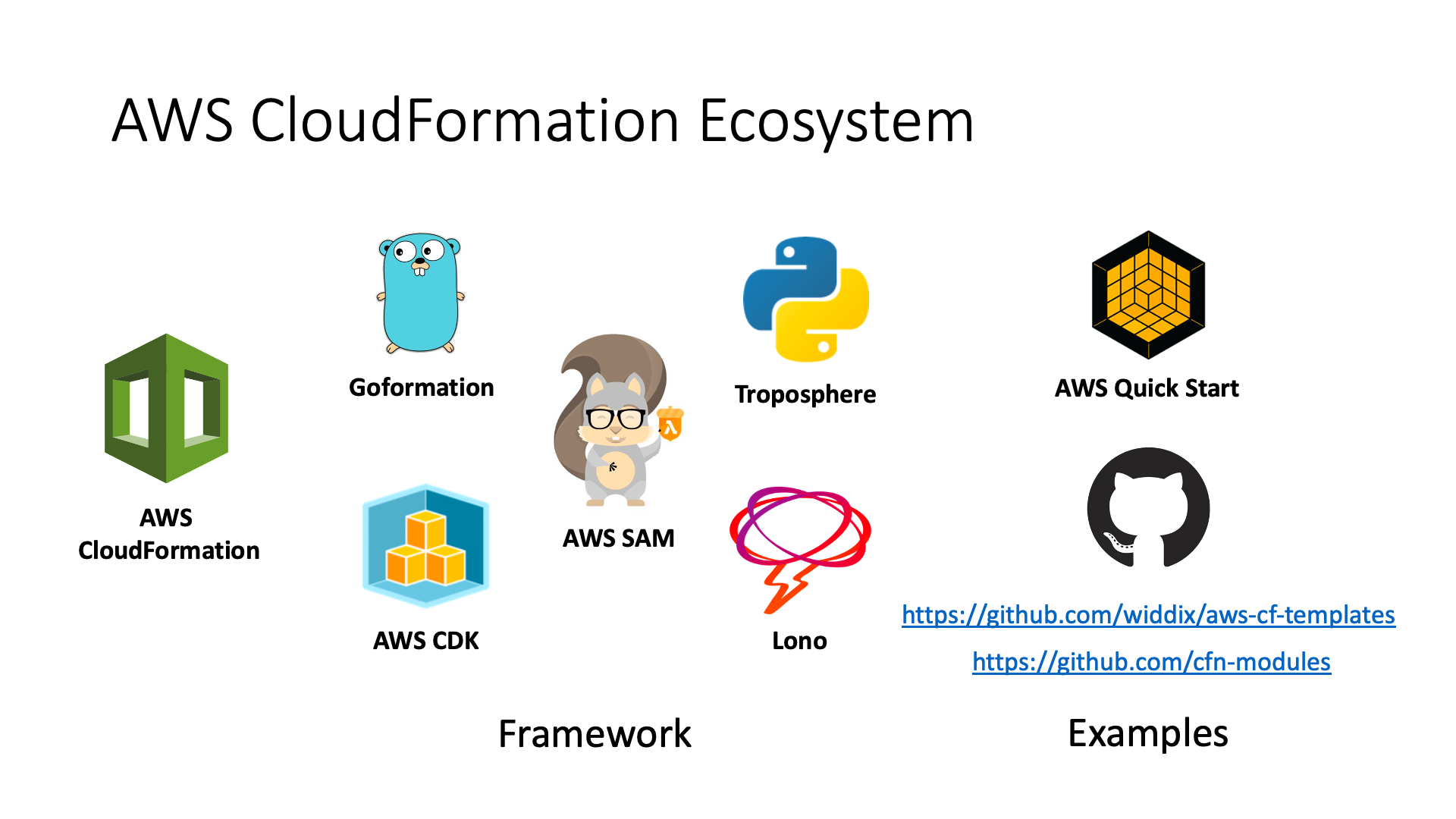 CloudFormation ecosystem is very large, there are many tools and framework build on top of CloudFormation. Also, thanks to AWS's strong focus on backwards compatibility there are many ready-to-use CloudFormation templates, so you rarely have to start from scratch. This greatly reduces time to market.