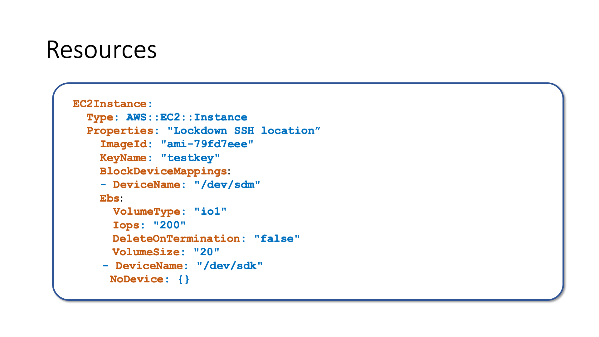 ImageId: 'ami-1234'AWS::CloudFormation::WaitCondition can be used when you need to coordinate stack resource creation with configuration actions that are external to the stack creation or to track the status of a configuration process. You need to create also a WaitConditionHandle that returns a pre-signed URL you can use with cfn-signal to notify execution state to CloudFormation.